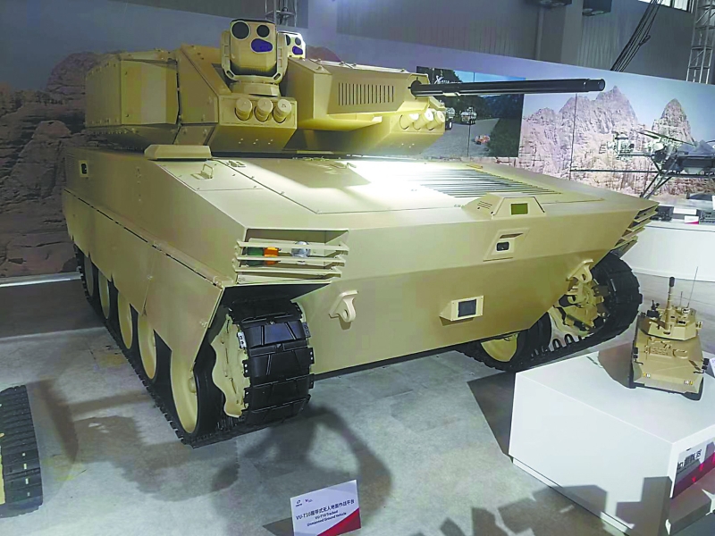 相比各種無人機和巡飛彈,珠海航展上的無人地面作戰(zhàn)車輛在作戰(zhàn)性能上也毫不遜色。除了VT-5U輕型坦克可以臨時客串“無人坦克”外,兵器工業(yè)集團的VU-T10履帶式無人地面作戰(zhàn)平臺也堪稱重型無人車輛。VU-T10主要針對城市環(huán)境作戰(zhàn),選擇采用厚重的履帶式底盤,配備有30毫米口徑遙控武器站,未來還可以根據(jù)需要配備4枚“紅箭-12”反坦克導(dǎo)彈,加載7.62毫米機槍,其武器配備的豐富程度相比俄羅斯BMPT“終結(jié)者”火力支援車也不遜色,卻沒有了后者在巷戰(zhàn)中可能遭遇人員傷亡的風(fēng)險。