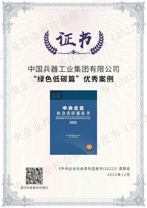 兵器工業(yè)集團(tuán)綠色低碳案例入選《中央企業(yè)社會(huì)責(zé)任藍(lán)皮書(shū)(2022)》