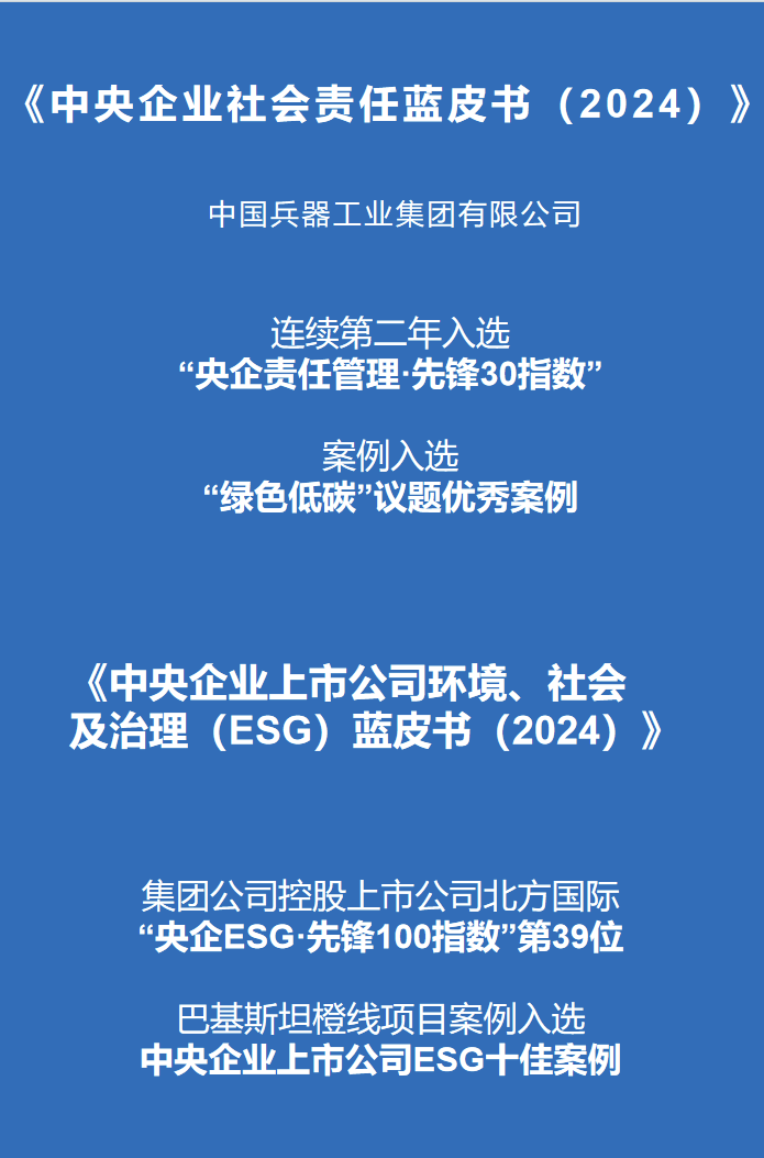 11月7日至8日,由國務院國資委主辦的“第七屆中國企業(yè)論壇之國有企業(yè)社會責任平行論壇”和2024中國企業(yè)新媒體年會在京舉行。 國有企業(yè)社會責任平行論壇現(xiàn)場發(fā)布了《中央企業(yè)社會責任藍皮書(2024)》《中央企業(yè)海外環(huán)境、社會及治理(ESG)藍皮書(2024)》《中央企業(yè)上市公司環(huán)境、社會及治理(ESG)藍皮書(2024)》等系列成果。其中,集團公司連續(xù)第二年入選“央企責任管理·先鋒30指數(shù)”榜單,集團公司案例入選“綠色低碳”議題優(yōu)秀案例,所屬控股上市公司北方國際入選“央企ESG·先鋒100指數(shù)”第39位,巴基斯坦橙線項目案例入選中央企業(yè)上市公司ESG十佳案例。